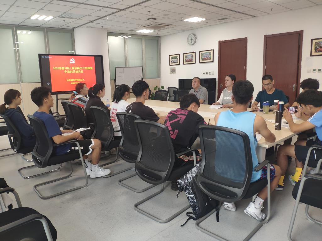 2020年9月22日,体育健康学院党总支在体育馆会议室举办2020年入党积极分子培训班开班仪式,体育健康学院党总支书记李超、辅导员成甜、组织员罗凌云及14名入党积极分子参加。