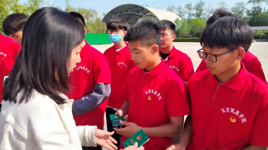 团总支书记周璇为新团员颁发团员证