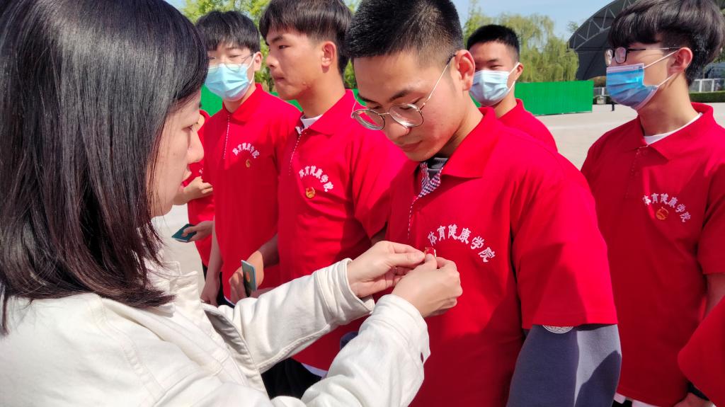 团总支书记周璇为新团员佩戴团徽