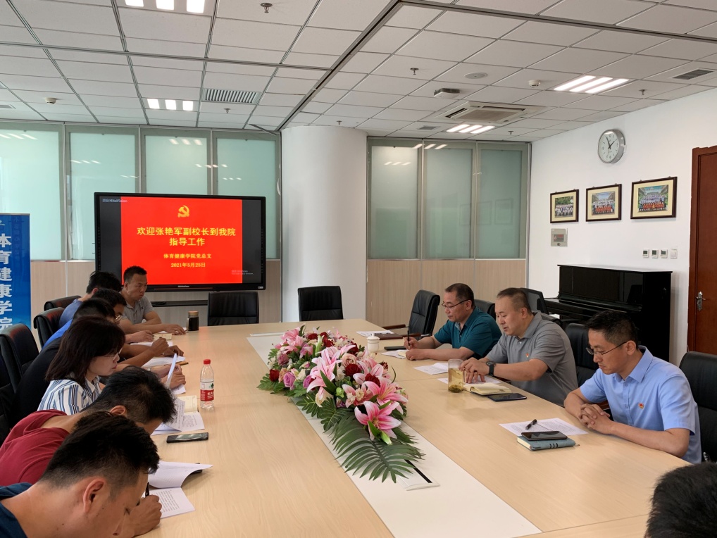 2021年5月25日,校党委常委、副校长张艳军同志深入体育健康学院党总支,参加体育健康学院教师党支部活动并对党史学习教育进行调研指导。体育健康学院党总支书记李超、教师党支部书记单静怡、全体教师党员、组织员参加会议。会议由党总支书记李超主持。