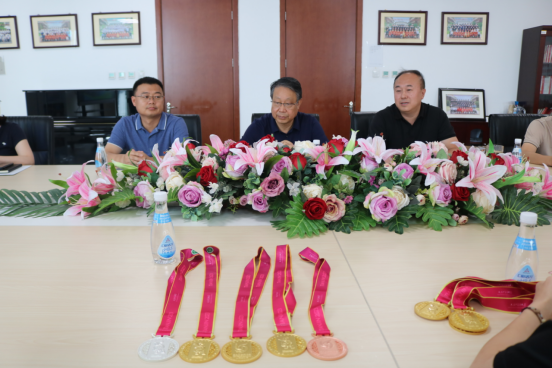 会议伊始,李超书记向郭校长介绍参加此次传运会的教练员和运动员们,每位运动员自我介绍并介绍自己在此次传运会中获得的奖项。郭校长对大家取得的成绩表示祝贺!