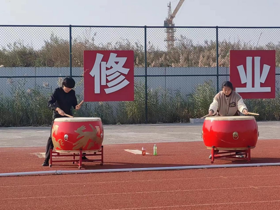 校团委艺术团首先带来大堂鼓《牛斗虎》表演。