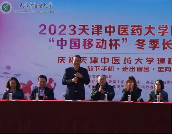 为贯彻落实市教委《关于组织开展大学生“放下手机、走出宿舍、走向操场”课外体育锻炼活动的通知》要求,引导大学生积极参加体育锻炼,增强身体素质。在庆祝天津中医药大学建校65周年之际,由体育健康学院和校团委联合举办的阳光体育节“中国移动杯”冬季长跑接力赛于2023年11月14日下午在学校田径场举行,副校长郭义教授出席活动,校团委书记张晶、体育健康学院党总支书记兼院长李超、静海移动公司副总经理石建、刘兰香以及学校各二级学院、研究生院相关领导参加,来自12个学院的300余名运动员参加比赛。