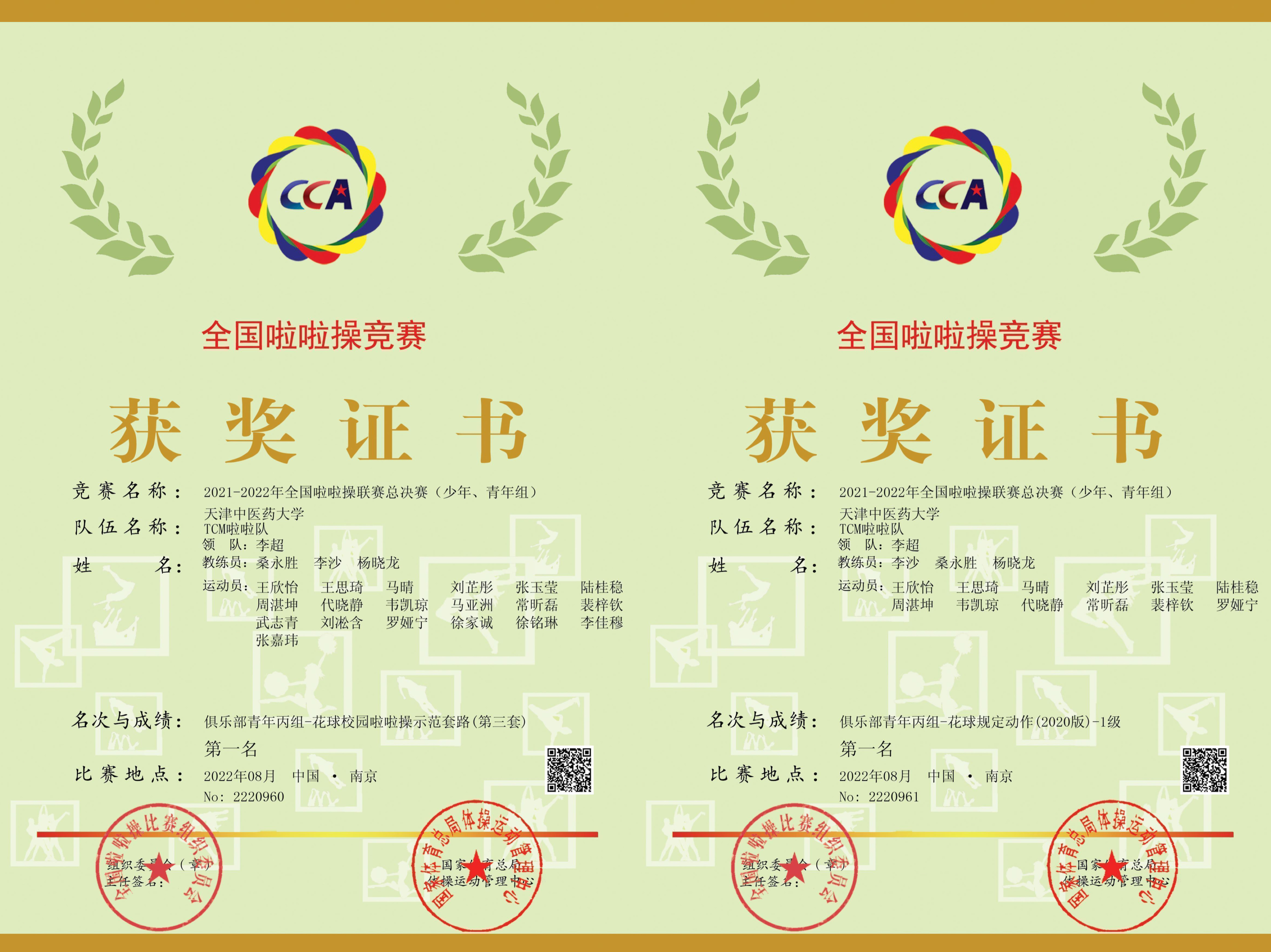 此次比赛中,我校TCM啦啦操队共参加了2020版校园啦啦操花球示范套路、2020版全国啦啦操规定动作1级花球两个项目的比赛。经过激烈角逐,我校TCM啦啦操队斩获两个项目冠军。