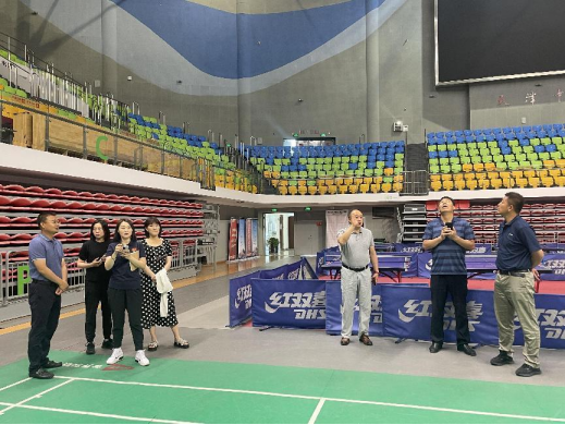 体育健康学院李超书记代表学校对河北中医药大学各位同仁来校交流指导表示热烈欢迎,对河北中医学院更名为河北中医药大学表示祝贺,并带领李维华主任等一行7人参观学校体育馆,介绍了体育馆设计理念、布局及场地使用情况。