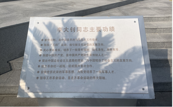 下午2时,抵达李大钊纪念馆。沿着纪念馆的中轴线由南及北,首先映入眼帘的是8根气势宏伟的功绩柱,展现了李大钊生平中的八大丰功伟绩。从馆前进入馆内要登上38级台阶,寓意了李大钊一生走过的38年红色人生历程。
